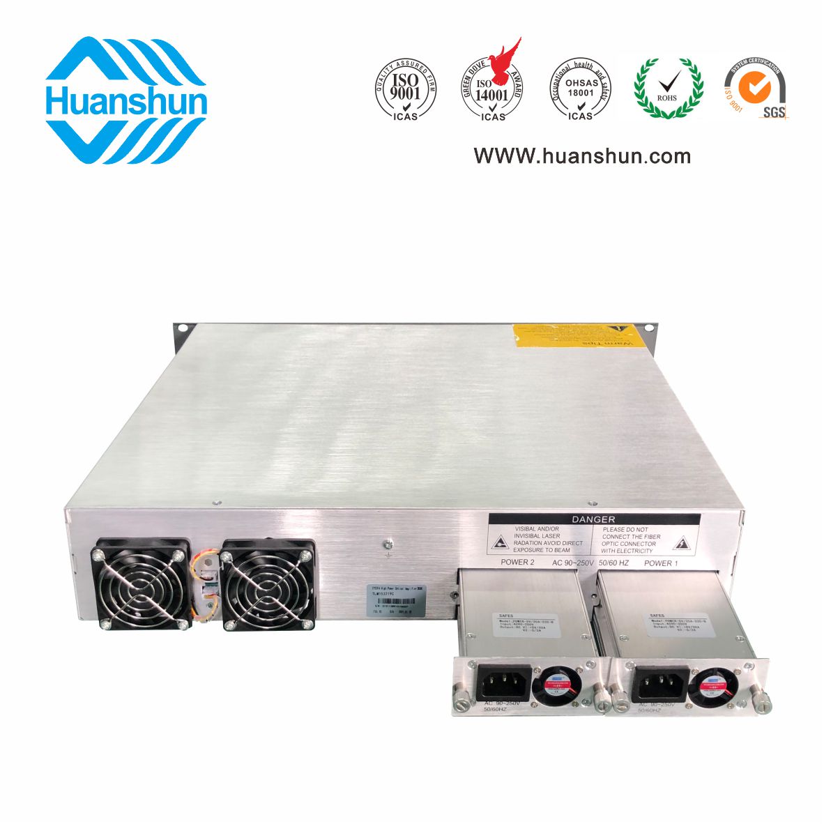 大功率光纖放大器EYDFA | YGF1532-16C | 19 " 2U/3U標(biāo)準(zhǔn)機(jī)箱,-5 ~ +10 d Bm輸入,32路標(biāo)稱規(guī)格(16、17、18、19、20、21、22、23dBm)放大輸出,并支持下調(diào)-2dB,安全連接模式,NF ≤ 5dB(0dBm時(shí));內(nèi)置FWDM合波器,插播損耗 ≤ 1dB;雙模塊熱插撥電源,AC90 ~ 255V或DC-48V供電,RJ45標(biāo)準(zhǔn)網(wǎng)管(支持SNMP、WEB) |