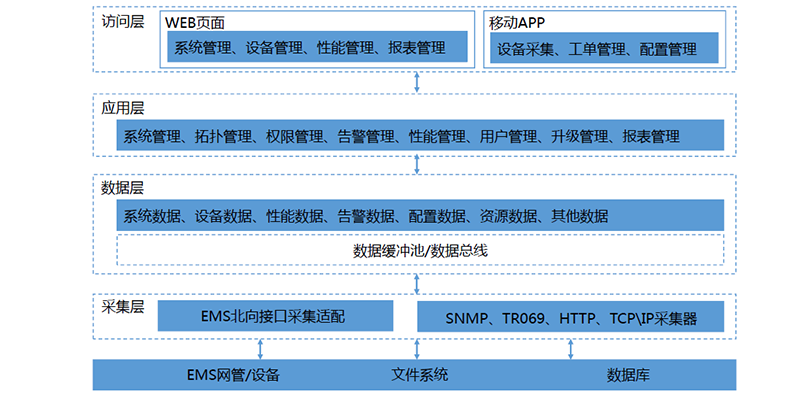 系統(tǒng)架構(gòu)分為采集層、數(shù)據(jù)層、 應(yīng)用層和訪問(wèn)層。